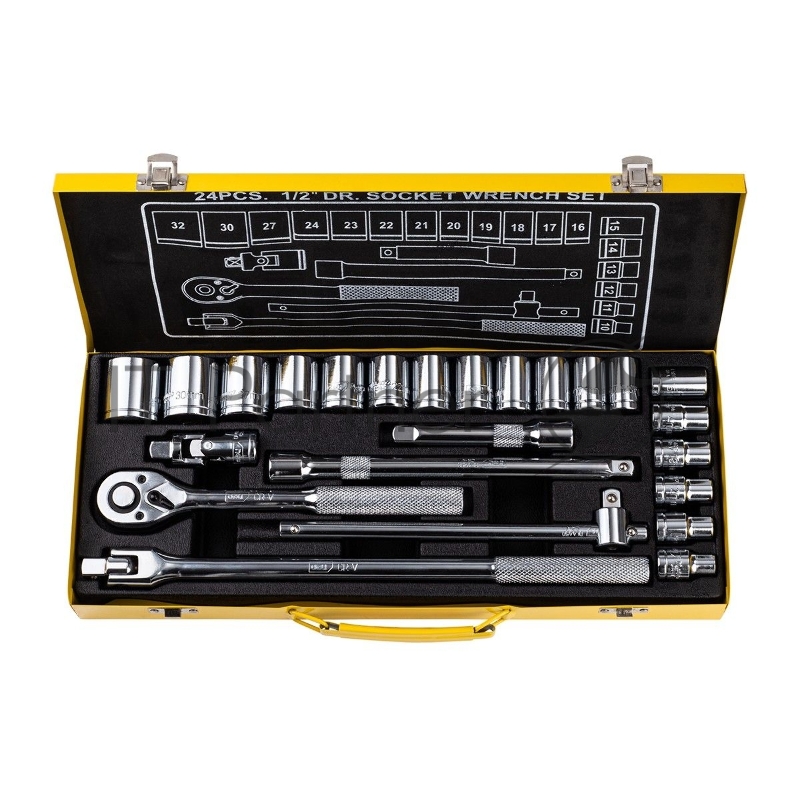 Набор торцевых ключей 24 шт Deli DL2024T Материал: 50BV30. Набор инструментов 24 шт. включает в себя:Головка серии 12,5 мм, 17 шт. (10, 11, 12, 13, 14, 15, 16, 17, 18, 19, 20, 21, 22, 24, 27, 30, 32 мм). Металлический кейс.