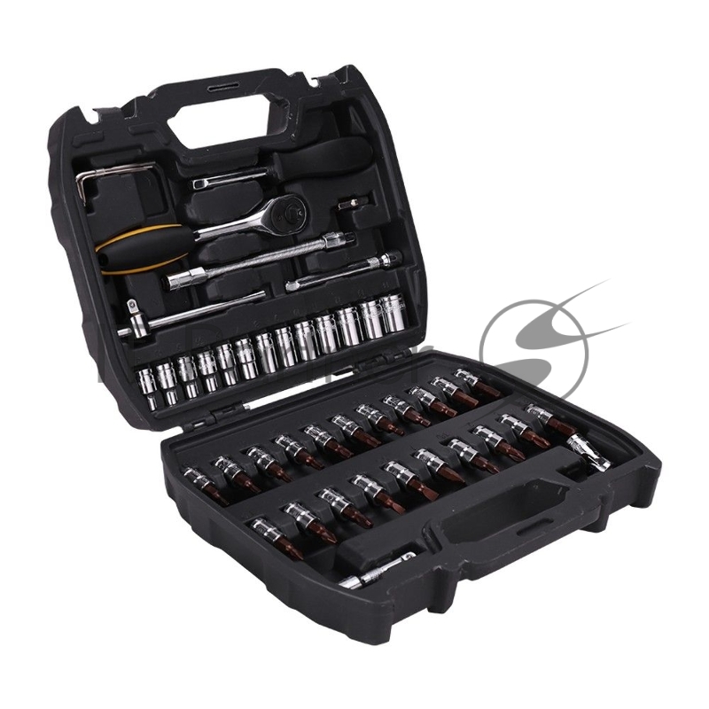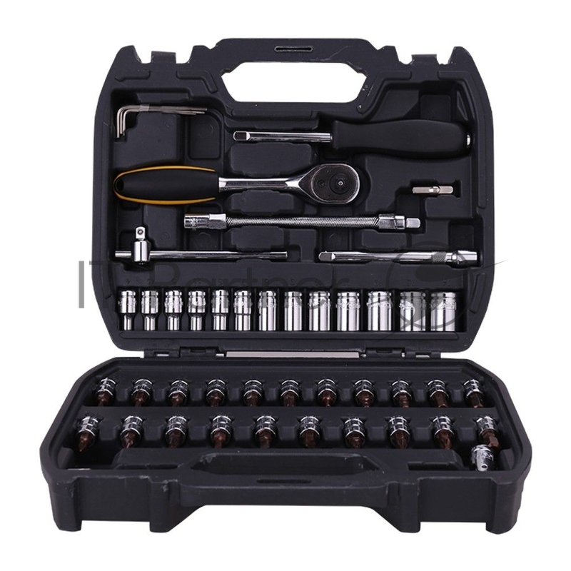 Набор торцевых ключей 46 шт Deli DL1046 1/4 Набор торцевых головок 46 шт. Муфты из стали 50БВ30 Cr-V. Высококачественная пластиковая коробка.