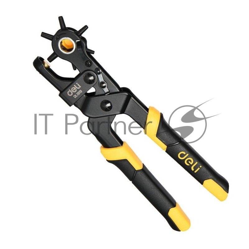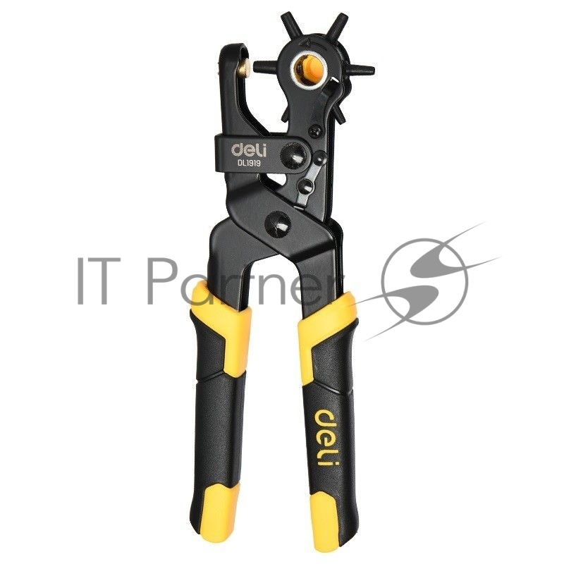 Револьверный дырокол для кожи 6-в-1 Deli DL1919 9 Размер: 9 дюймов. Диаметр пуансона: 2, 2,5, 3, 3,5, 4, 4,5 мм. Материал: Cr-V.