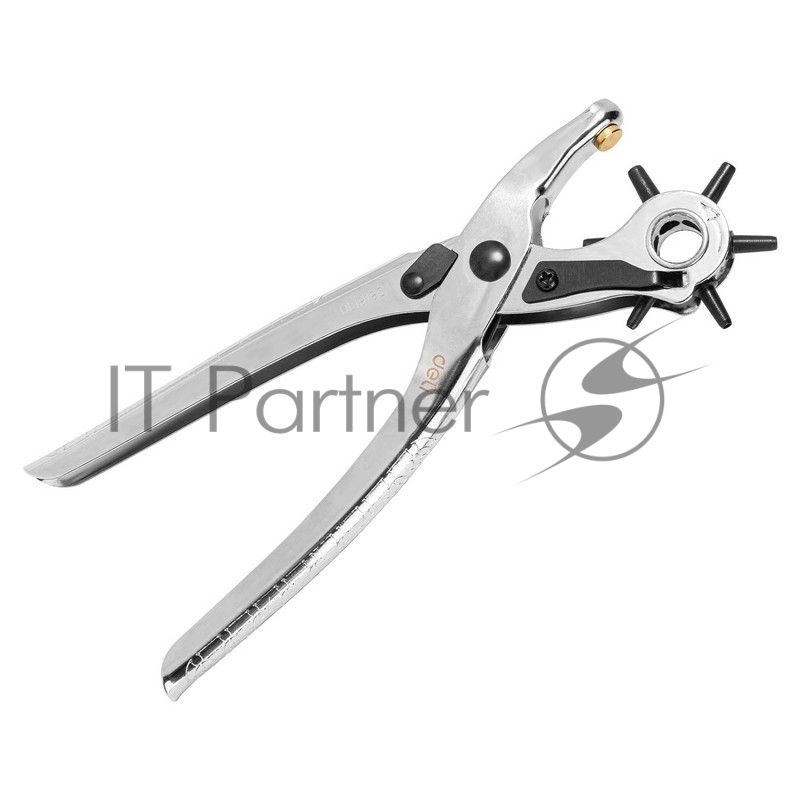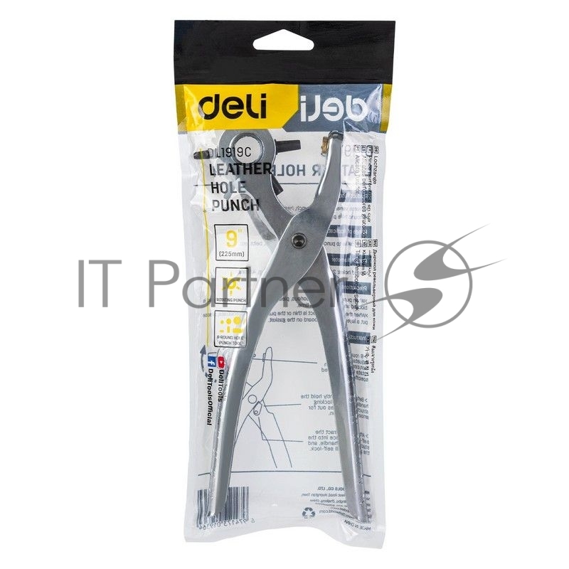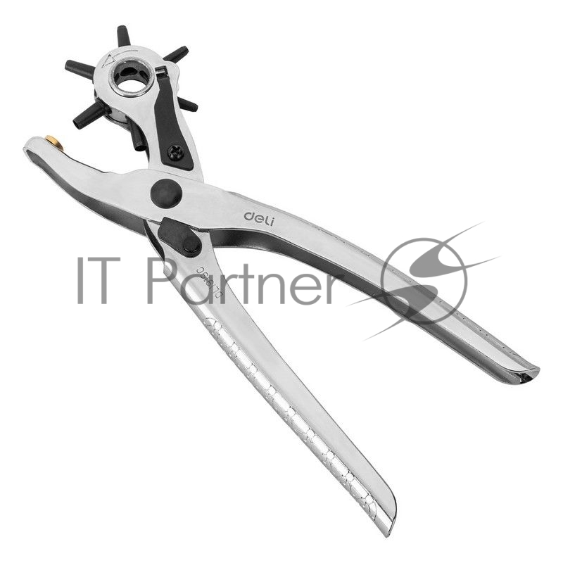 Револьверный дырокол для кожи 6-в-1 Deli DL1919С 9 Размер: 9 дюймов. 2, 2,5, 3, 3,5, 4, 4,5 мм. Формованный пуансон: Cr-V Хромированный.
