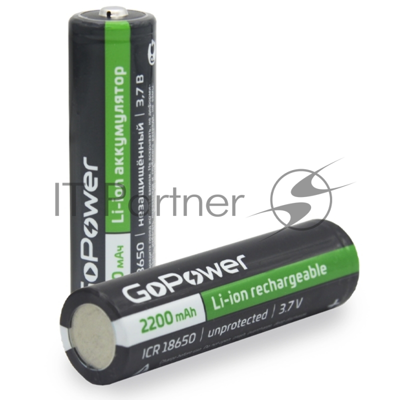 Аккумулятор Li-ion GoPower 18650 PC1 3.6V 2200mAh без защиты выс.конт. (1/80/160)