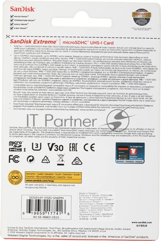 Флеш карта microSD 64GB SanDisk microSDXC Class 10 UHS-I A1 C10 V30 U3 Extreme 100MB/s