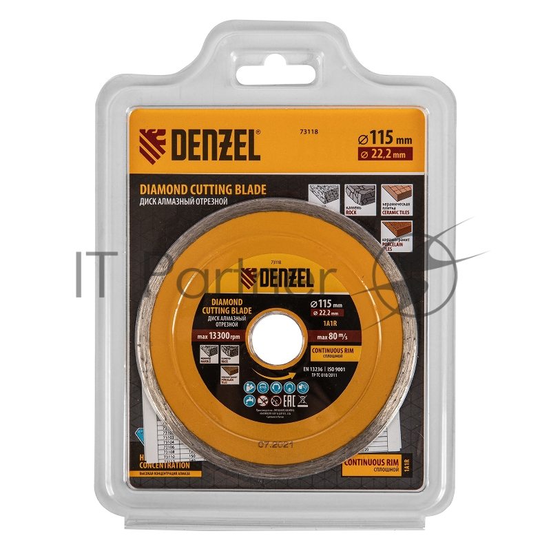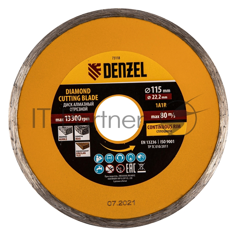 Диск алмазный отрезной ф115 х 22,2 мм, Сплошной, мокрое резание// Denzel