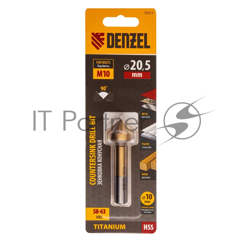 Зенковка конусная под М10, HSS, по металлу, цилиндрический хвостовик// Denzel