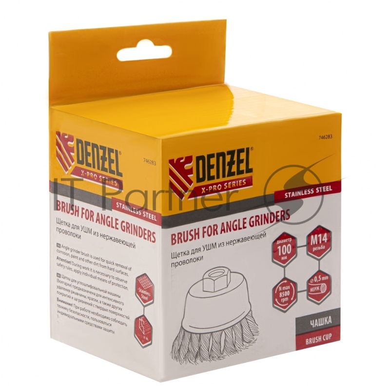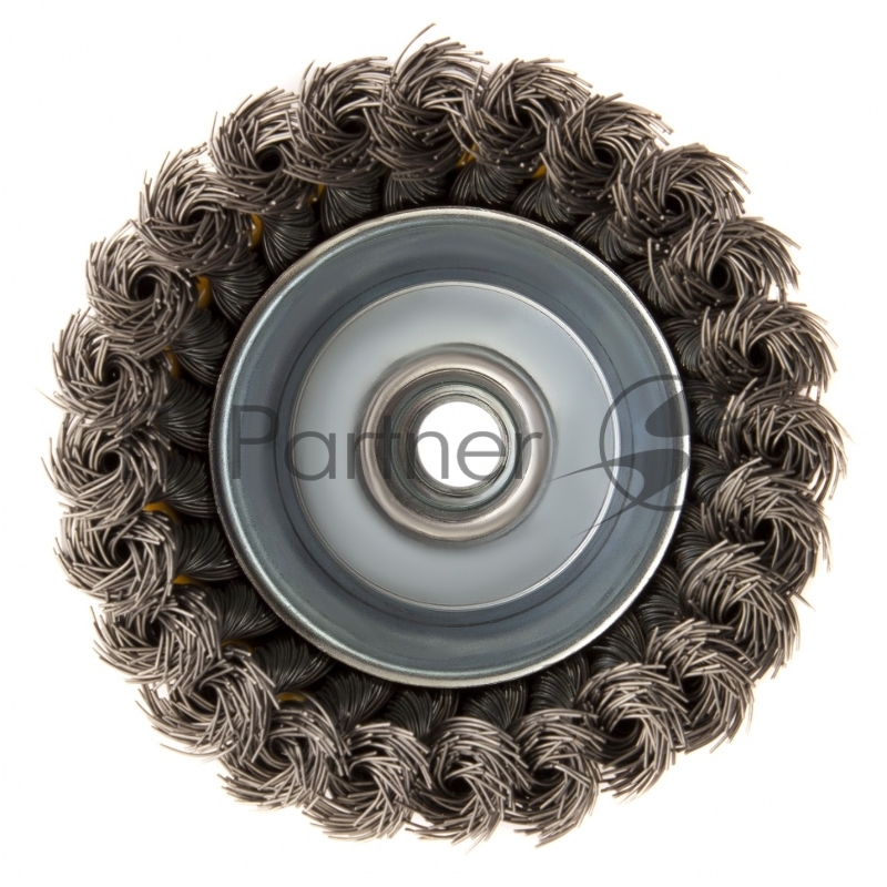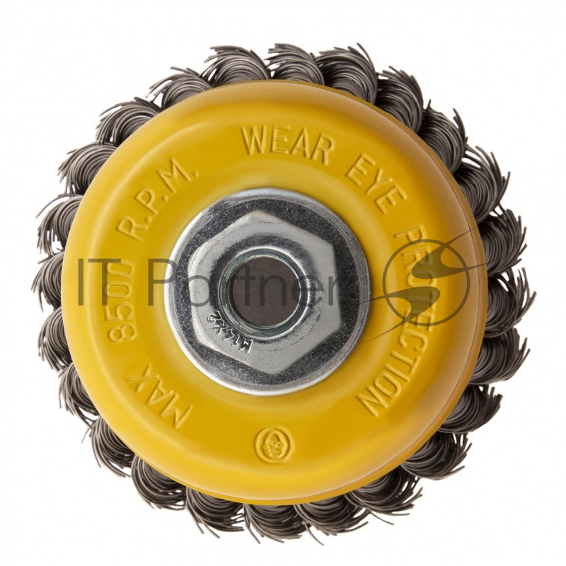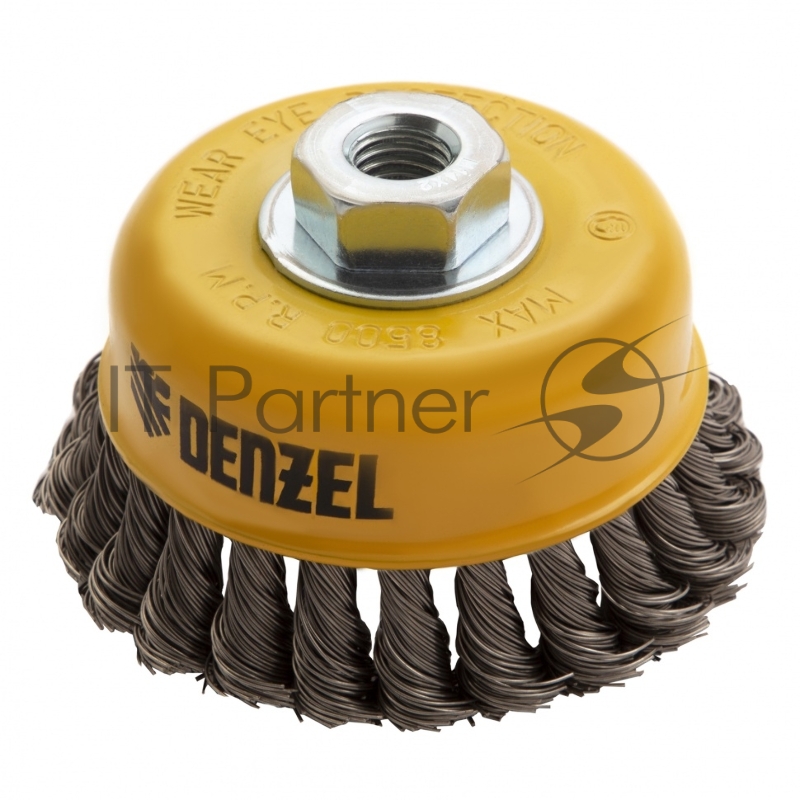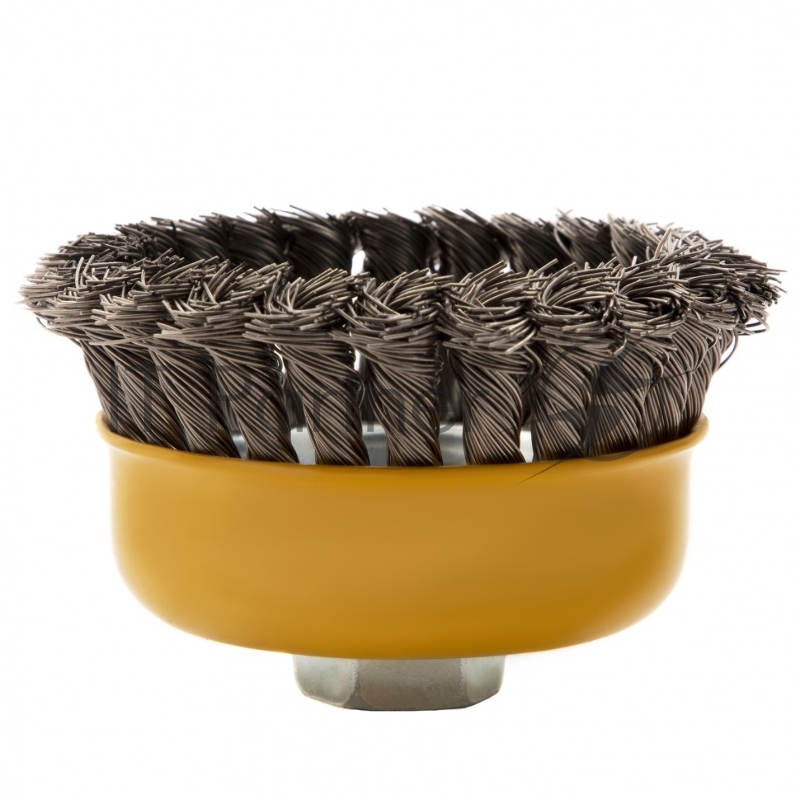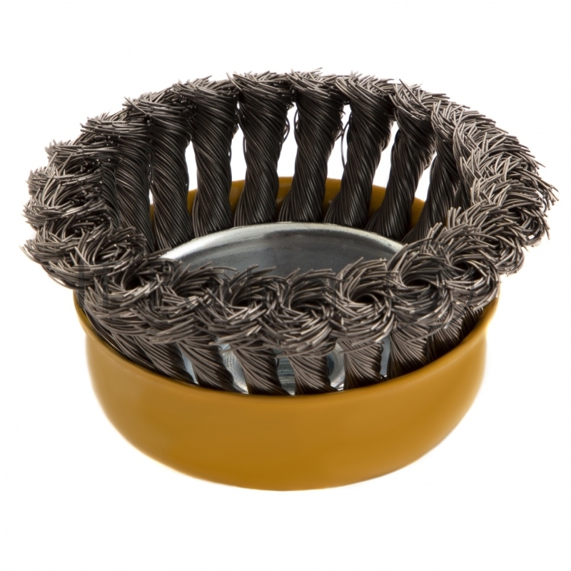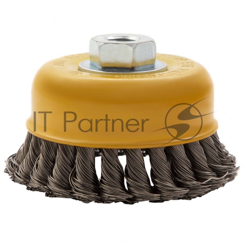 Щетка для УШМ, 100 мм, М14, Чашка, крученая нержавеющая проволока 0,5 мм// Denzel