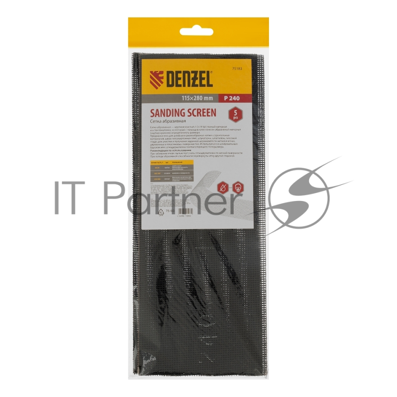 Сетка абразивная, P 240, 115 х 280 мм, 5 шт.// Denzel