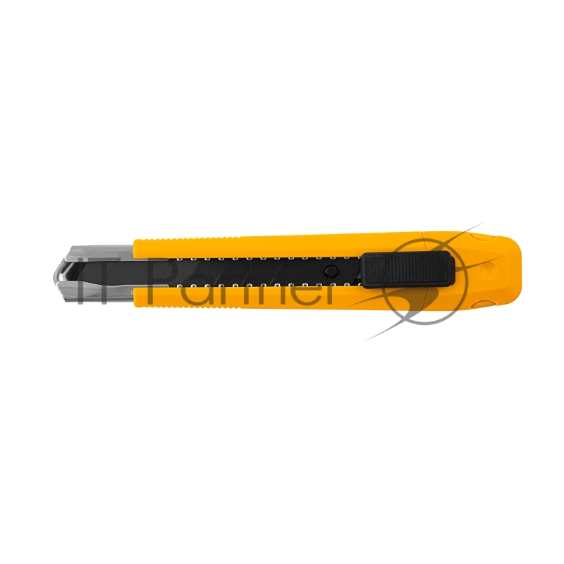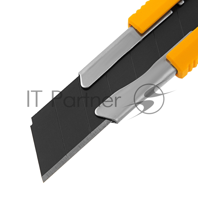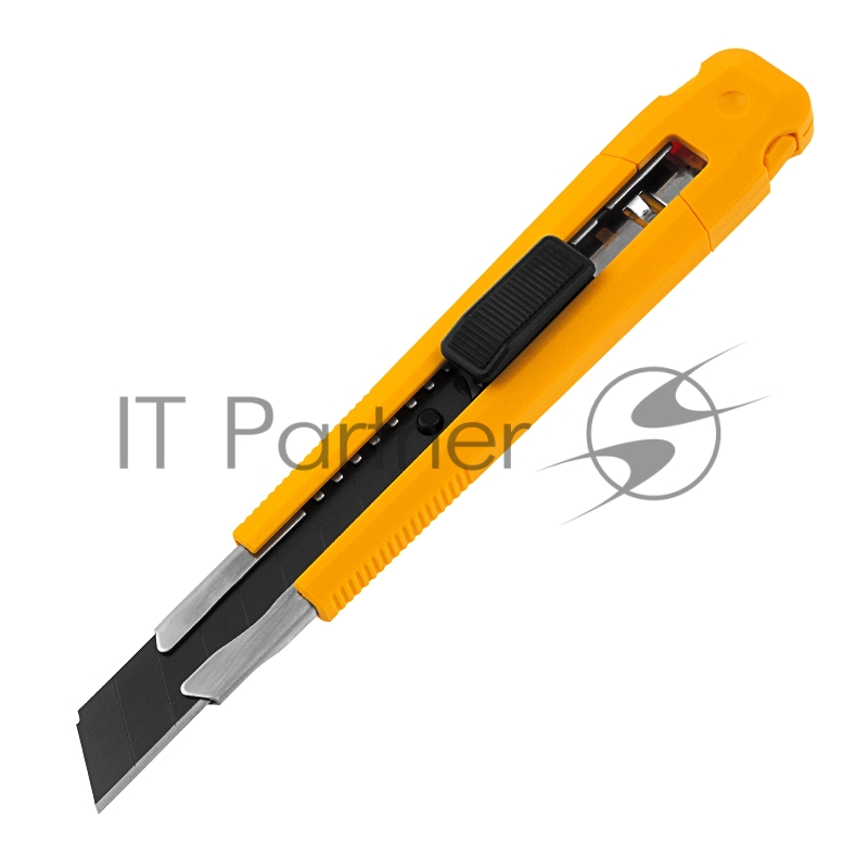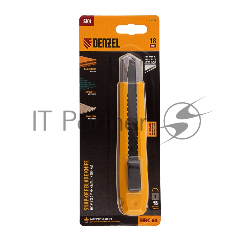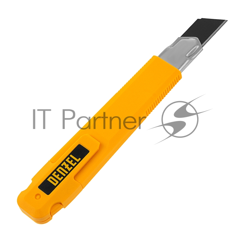 Нож, 18 мм, сменное лезвие, SK4, метал. направляющая, клипса, нажимной фиксатор// Denzel