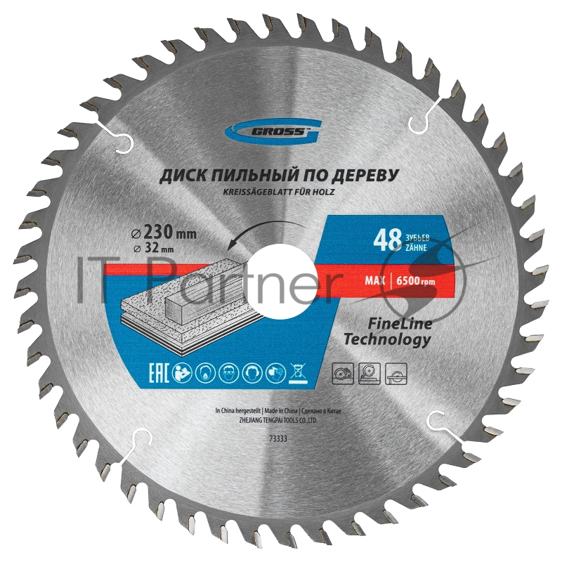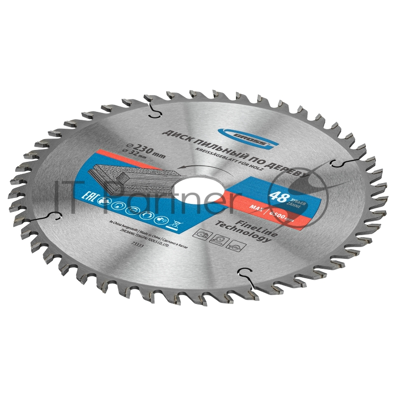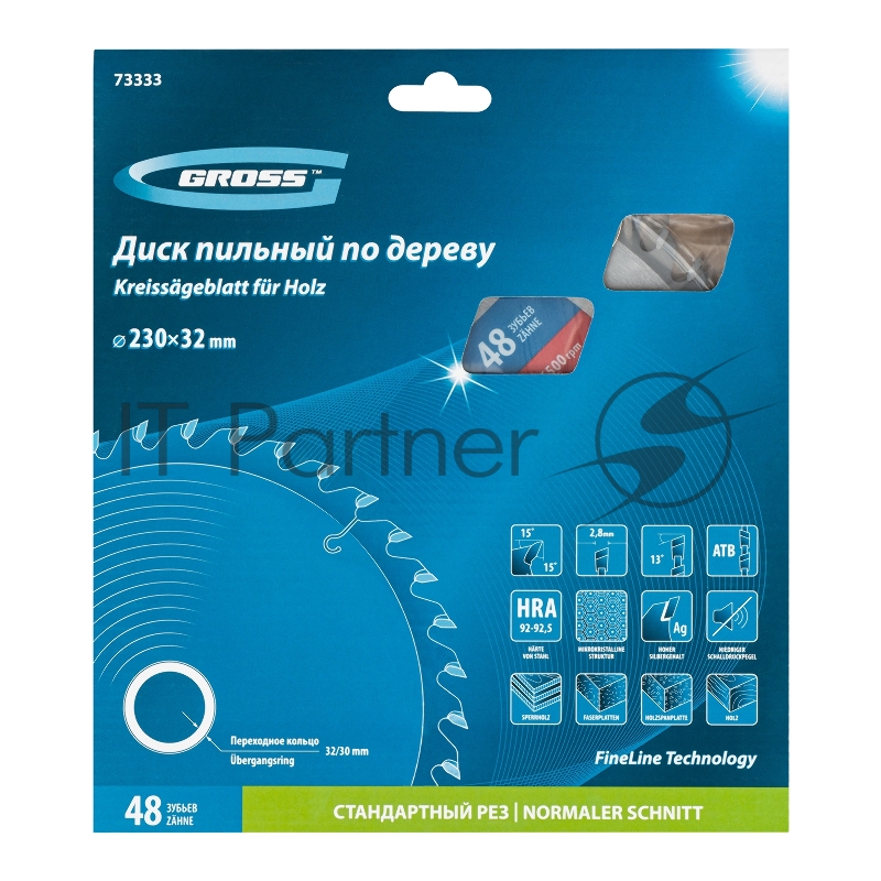 Пильный диск по дереву ф230 х 32 мм, 48 зубьев + кольцо 32/30мм// Gross