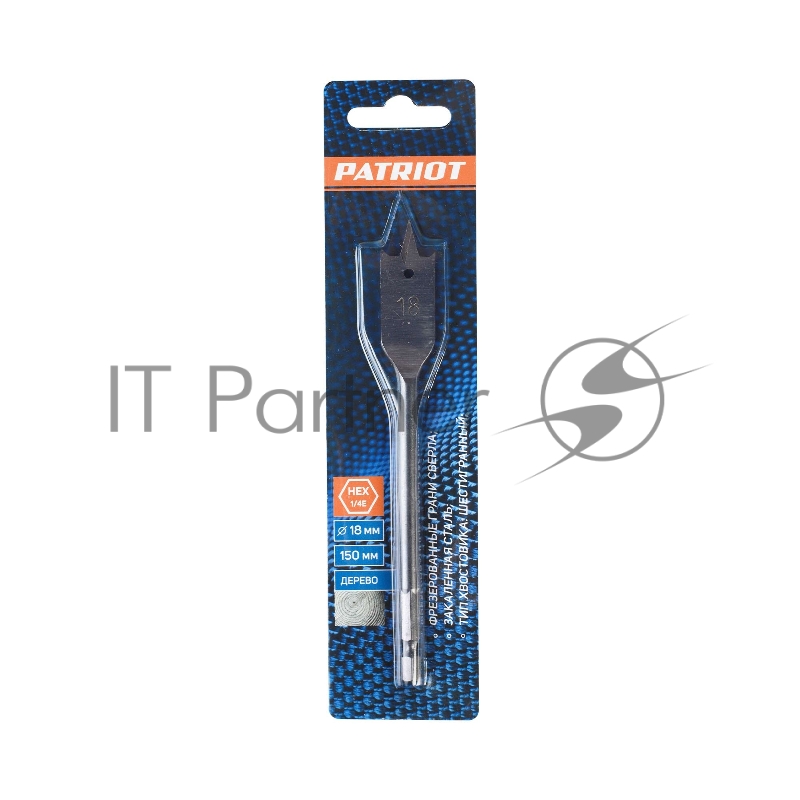 Сверло PATRIOT по дереву перовое 18мм х 150 мм, 1 шт в блистере