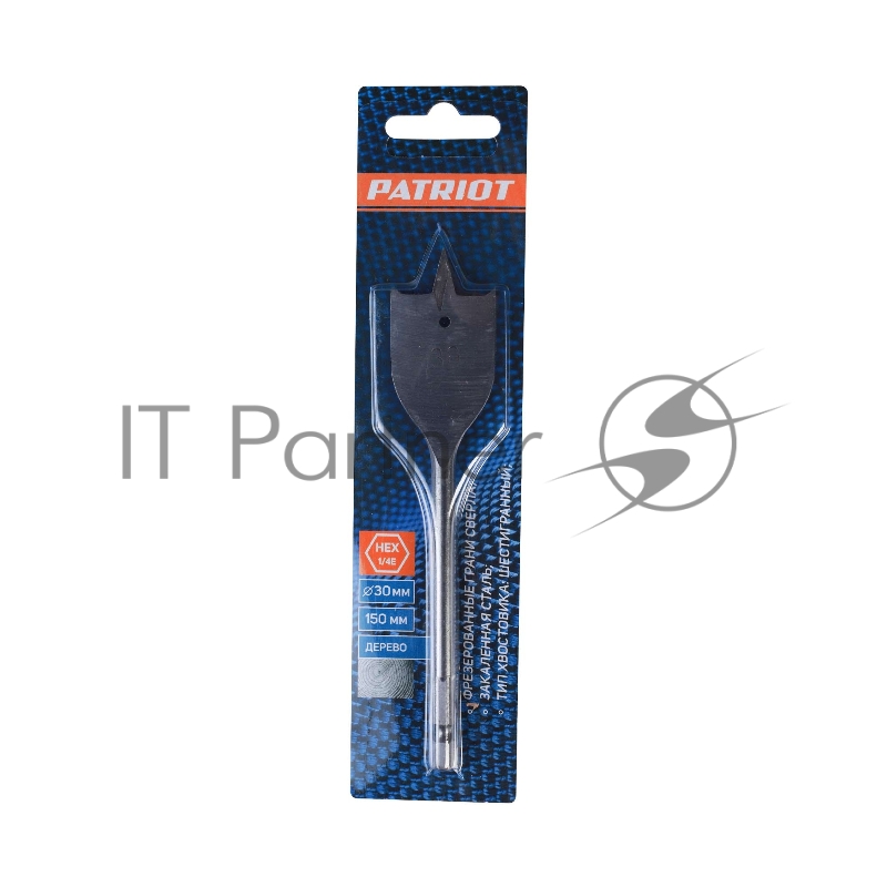 Сверло PATRIOT по дереву перовое 30мм х 150 мм, 1 шт в блистере