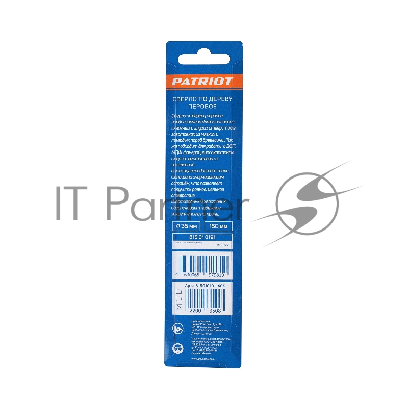 Сверло PATRIOT по дереву перовое 35мм х 150 мм, 1 шт в блистере