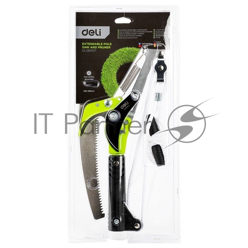 Выдвижная шестопильная пила и секатор Deli DL580511 , 2 шкива, сталь SK5, длина лезвия 290 мм, телескопическая рукоятка