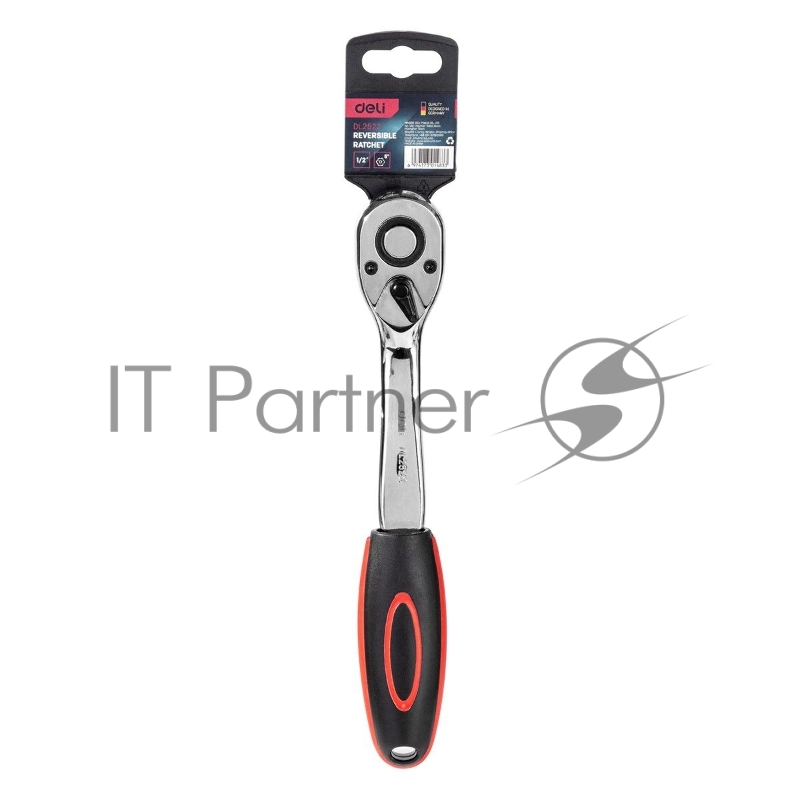 Ключ-трещотка Deli DL2522 1/2 Размер: 254 мм. Двухкомпонентная трещотка, 72T (зубья), шестерня Cr-Mo, быстросъемная