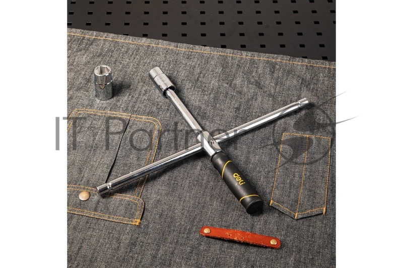 Крестообразный балонный гаечный ключ Deli DL4416K 1/2 17/19мм + 21/23мм Материал Cr-V, противоскользящая ручка, сумка на молнии