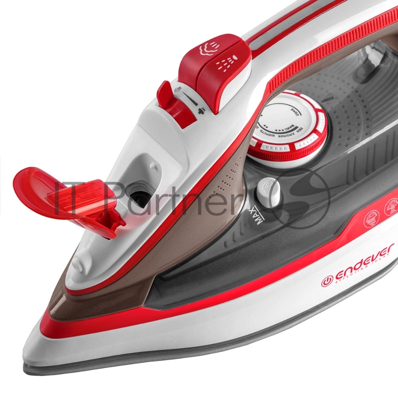 Утюг электрический Endever Delta-223, красный/белый, Мощность 2400 Вт, паровой удар 140 г/мин, бак 300 мл, 10 шт/уп