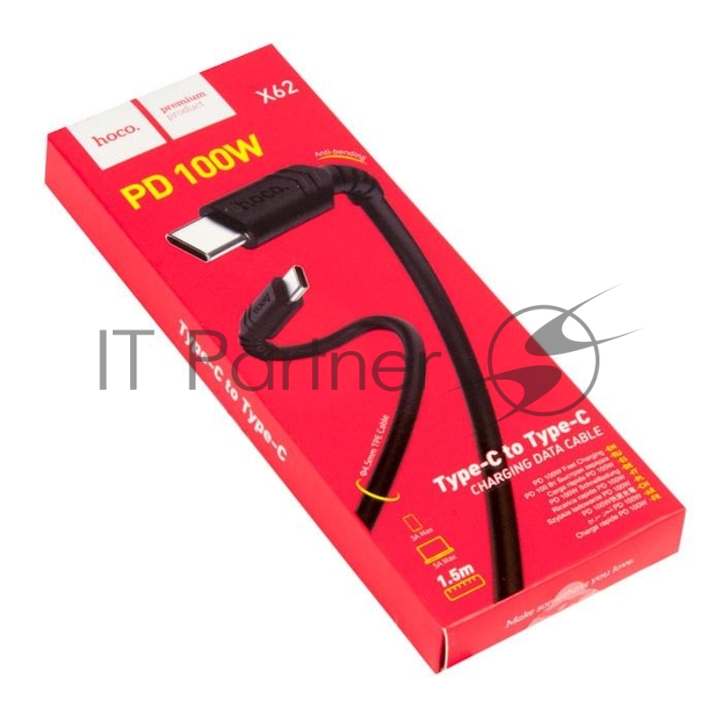 Кабель Type-C HOCO X62 для Type-C, 100W, 5.0A, длина 1.5м, черный