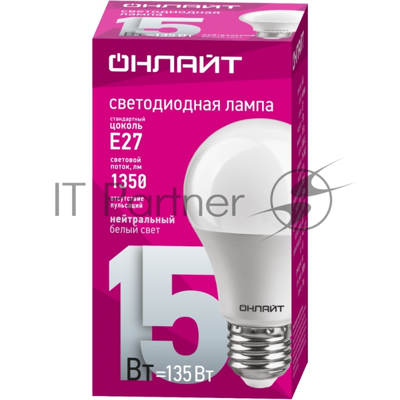 Лампа светодиодная 61 150 OLL-A60-15-230-4K-E27 грушевидная ОНЛАЙТ 61150