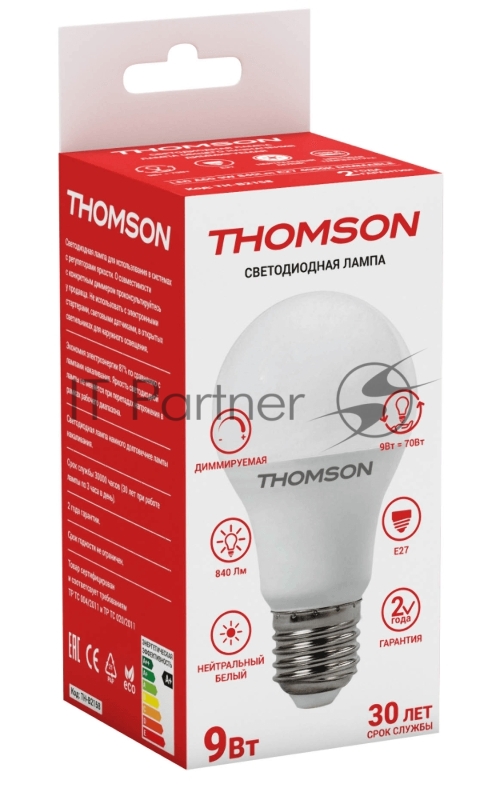 Лампа светодиодная Hiper THOMSON LED A60 9W 840Lm E27 4000K DIMMABLE