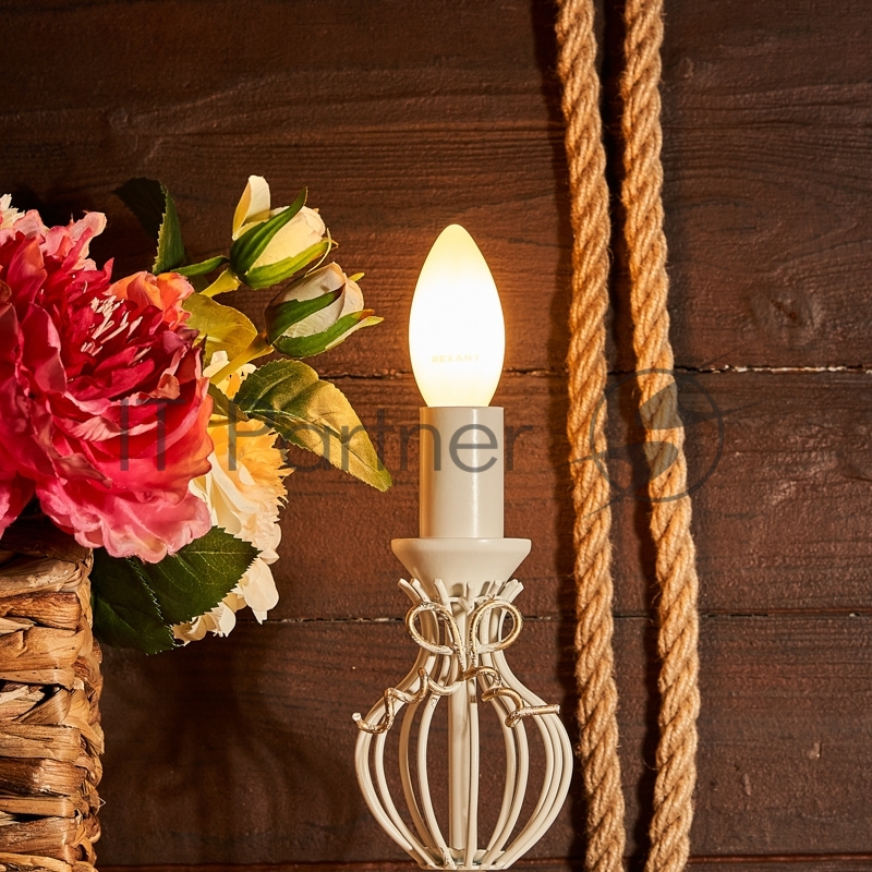 Лампа филаментная REXANT Свеча CN35 9.5 Вт 915 Лм 2700K E14 матовая колба