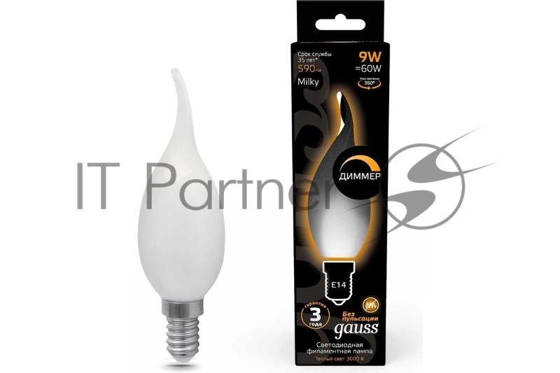 Лампа Filament Свеча на ветру 9W 590lm 3000К Е14 milky диммируемая LED