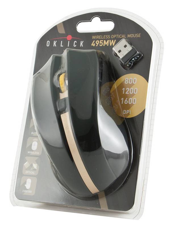 Мышь Oklick 495MW черный/золотистый оптическая (1600dpi) беспроводная USB (6but)