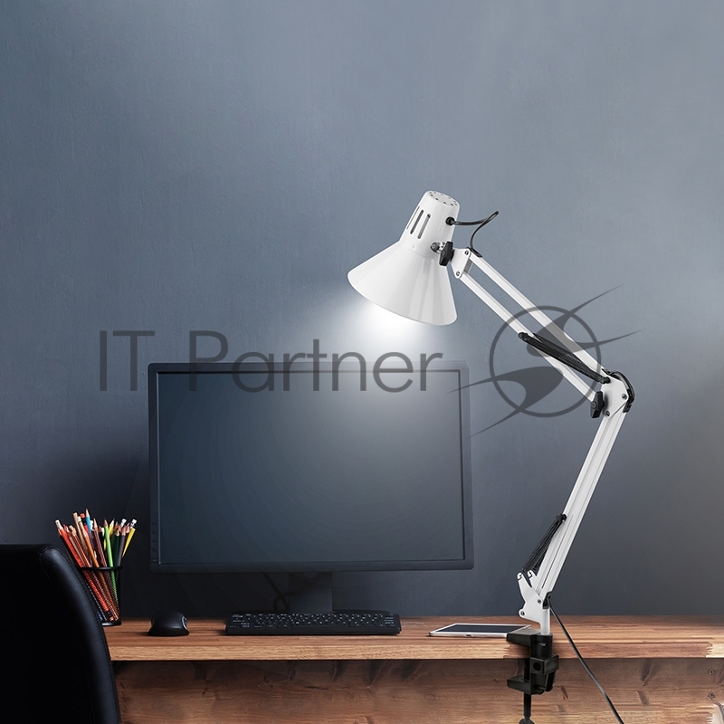Светильник настольный REXANT Акцент на металлической стойке с винтовым зажимом, с цоколем Е27, 60 Вт, цвет лунный свет