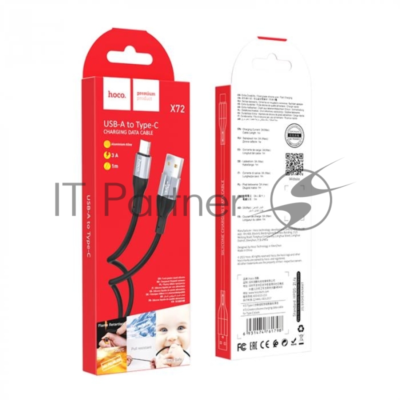 Кабель USB HOCO X72 Creator silicone для Type-C, 3.0А, длина 1.0м, черный