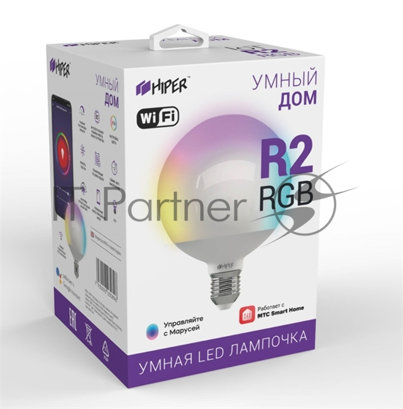 Умная LED лампочка HIPER Smart LED bulb IoT LED R2 RGB//Wi-Fi/Е27/Globe G125/Регулируемая яркость и цвет/14Вт/2700К-6500К/1200 лм/IoT LED R2 RGB