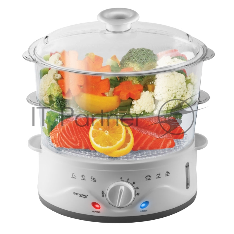 Пароварка электрическая Endever Vita-176, белый, мощность 1000 Вт, объем 5,5 л, таймер 60 минут, двойная защита, 4 шт./уп.