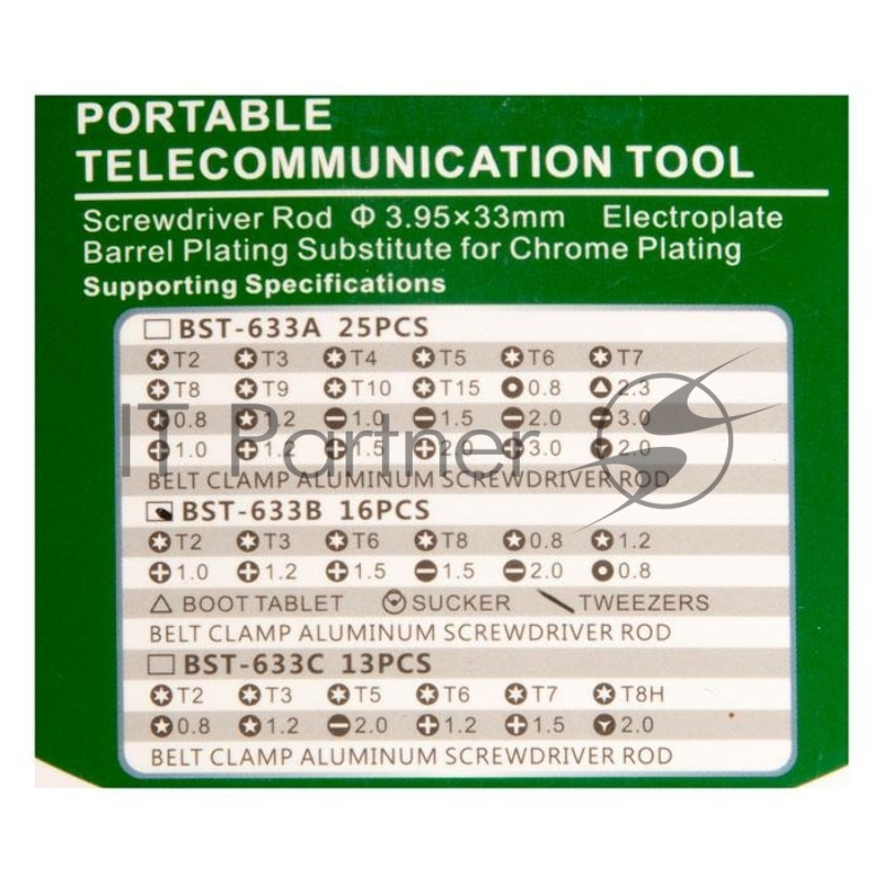 Набор инструментов карманный, с набором бит 16-в 1 и пинцетом в чехле BST-633B