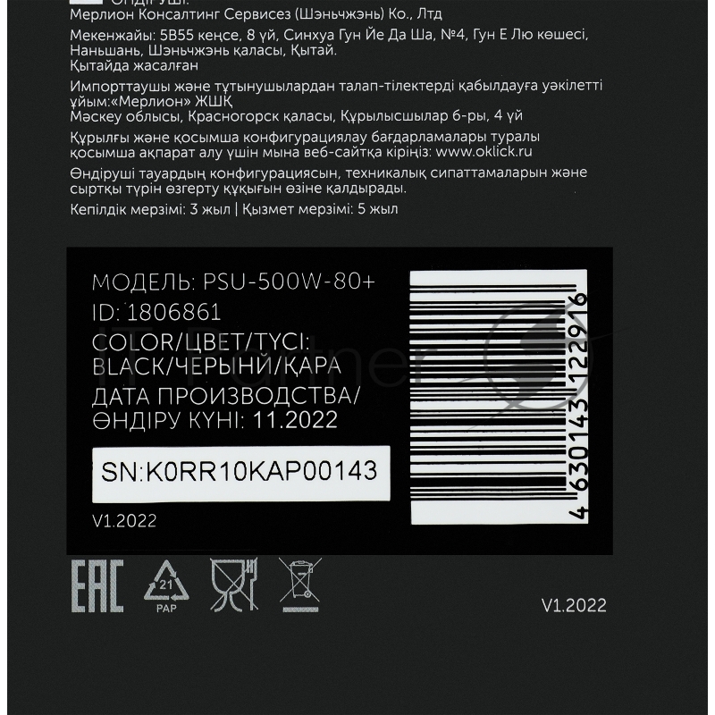 Купить Блок питания Oklick PSU-500W-80+ в Коврове. Забрать в магазине "Ваш Компьютер" г.Ковров пр-т Ленина 20
