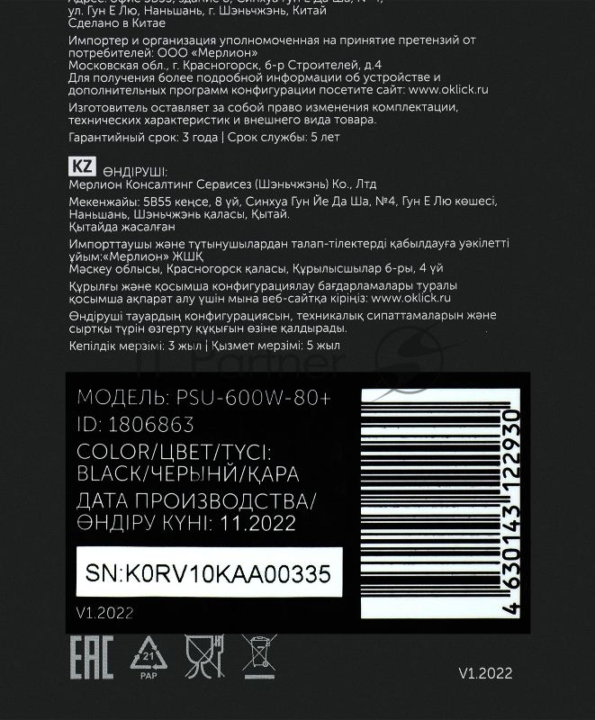 Код производителя: PSU600W80+
