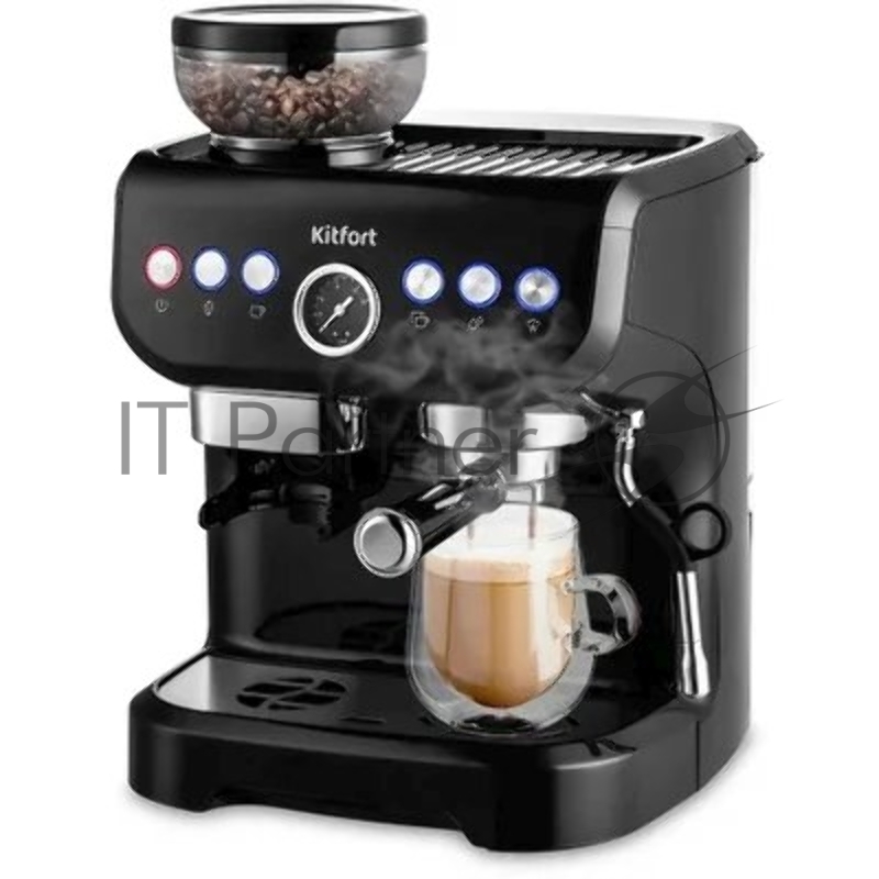 Кофеварка рожковая Kitfort КТ-7108 1560Вт черный/серебристый