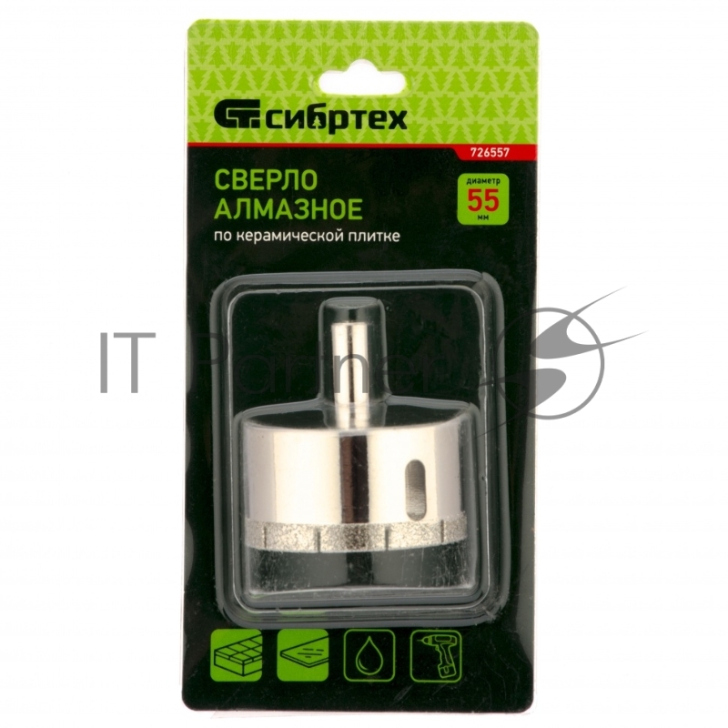 Сверло по стеклу и керамической плитке, 55 х 55 мм, цилиндр. хв.// Сибртех