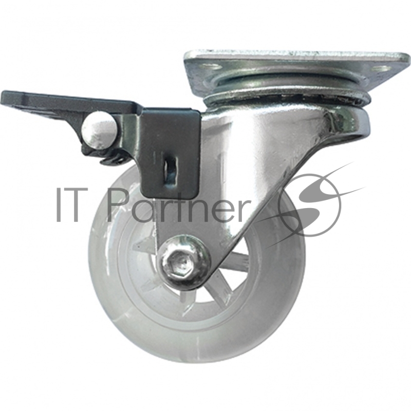 Колесо ПУ прозрачное поворотное с тормозом d-50мм, крепление платформенное// Сибртех