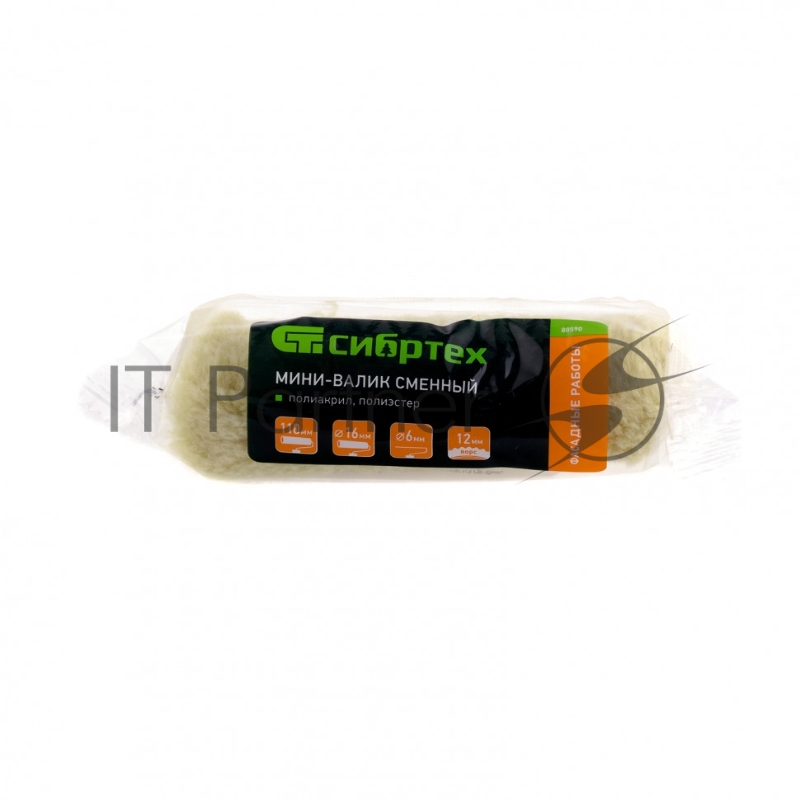 Мини-валик сменный Фасадные работы,110 мм,ворс 12мм,D16мм,Dруч.6мм,полиакрил, Сибртех