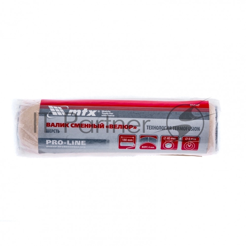 Валик сменный ВЕЛЮР PRO, 180 мм, ворс 4мм, D 40мм, D ручки - 6мм, шерсть 50%, полиакрил 50%// MTX