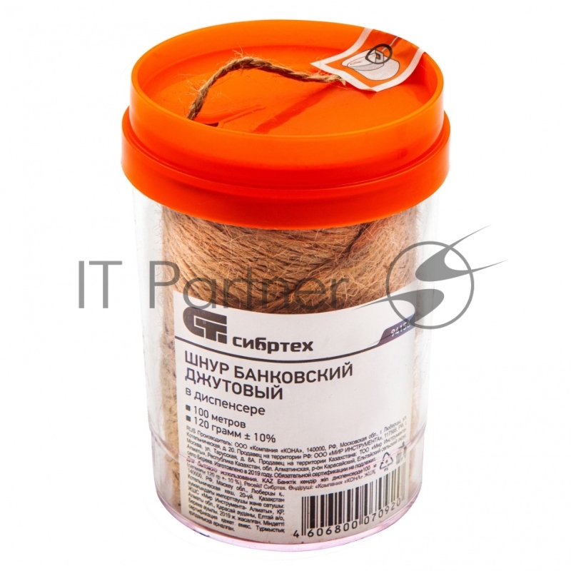 Шнур банковский джутовый 100 м в диспенсере (вес 120гр +- 10%), Россия// Сибртех