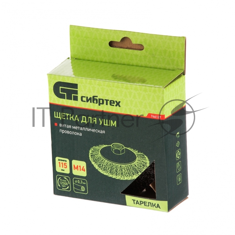 Щетка для УШМ, 115 мм, М14, тарелка, витая проволока// Сибртех