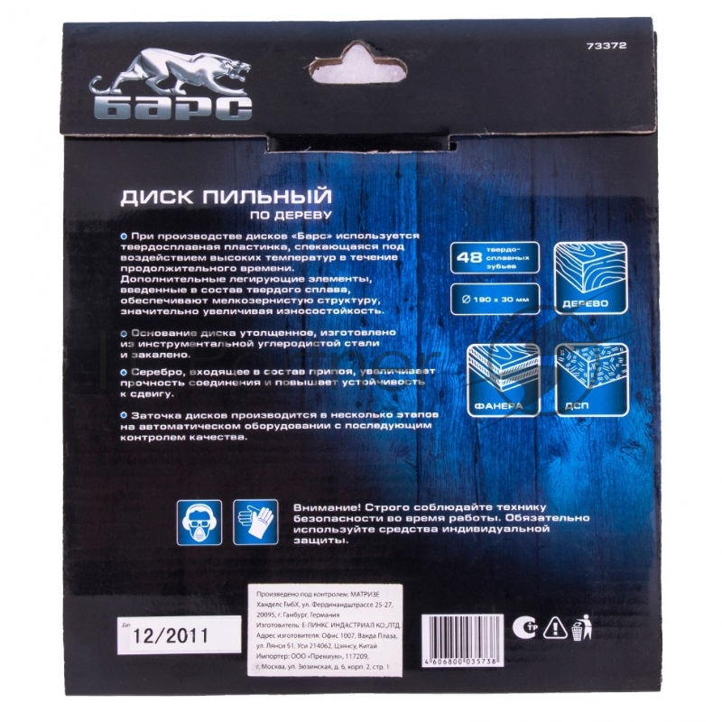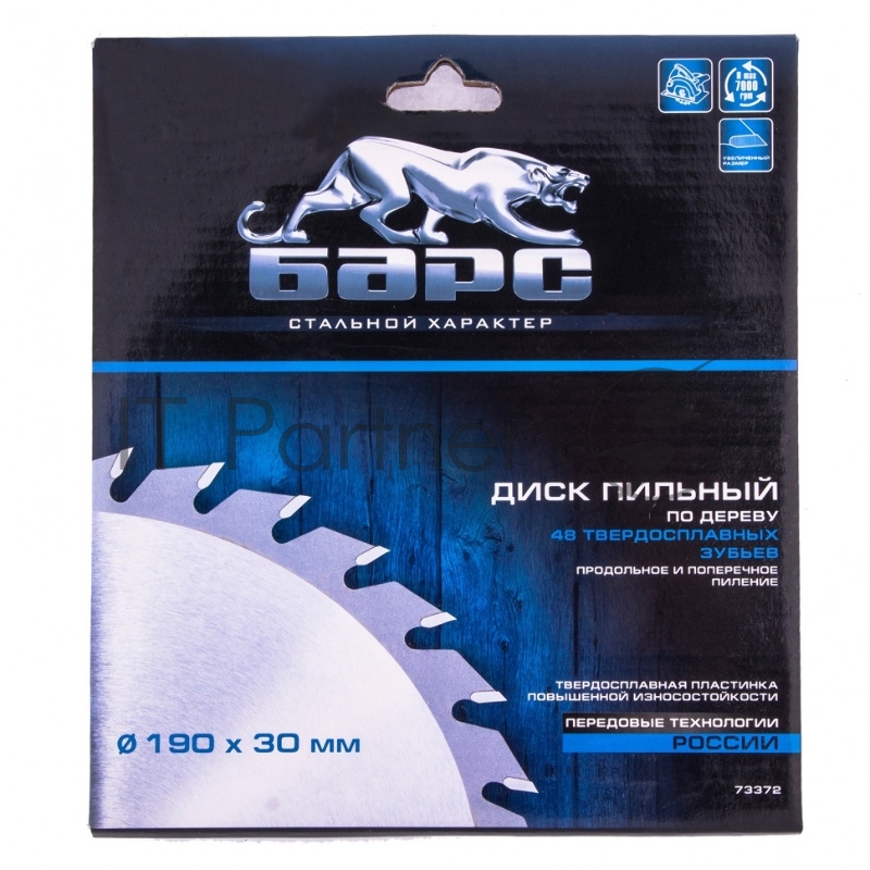 Пильный диск по дереву ф190 х 30 мм, 48 зубьев// Барс