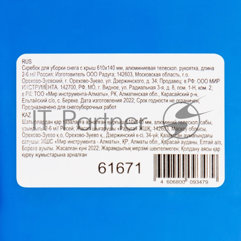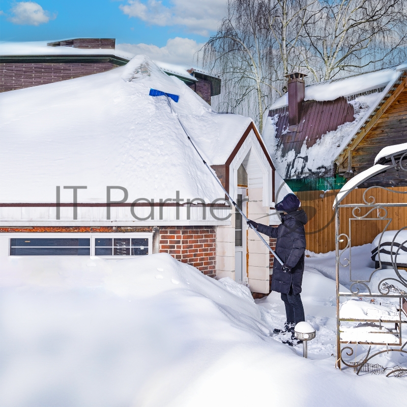 Скребок для уборки снега с крыш 610х140 мм, алюминиевая телескоп. рукоятка, длина 2-6 м// Россия