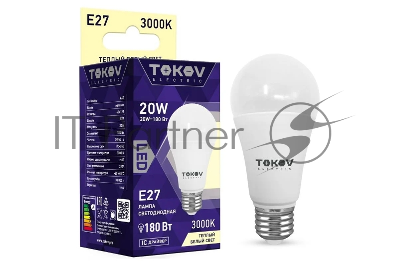 Лампа светодиодная 20Вт А60 3000К Е27 176-264В TOKOV ELECTRIC TKE-A60-E27-20-3K