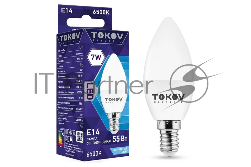 Лампа светодиодная 7Вт С37 6500К Е14 176-264В TOKOV ELECTRIC TKE-C37-E14-7-6.5K