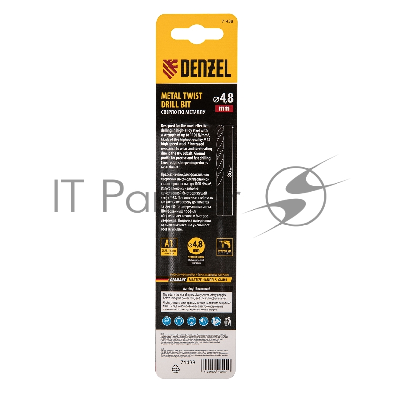 Сверло по металлу, 4,8 мм, HSS Co-8%// Denzel