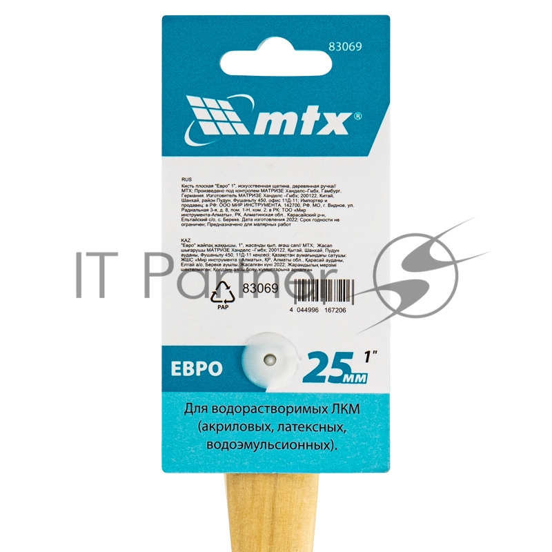 Кисть плоская Евро 1, искусственная щетина, деревянная ручка// MTX