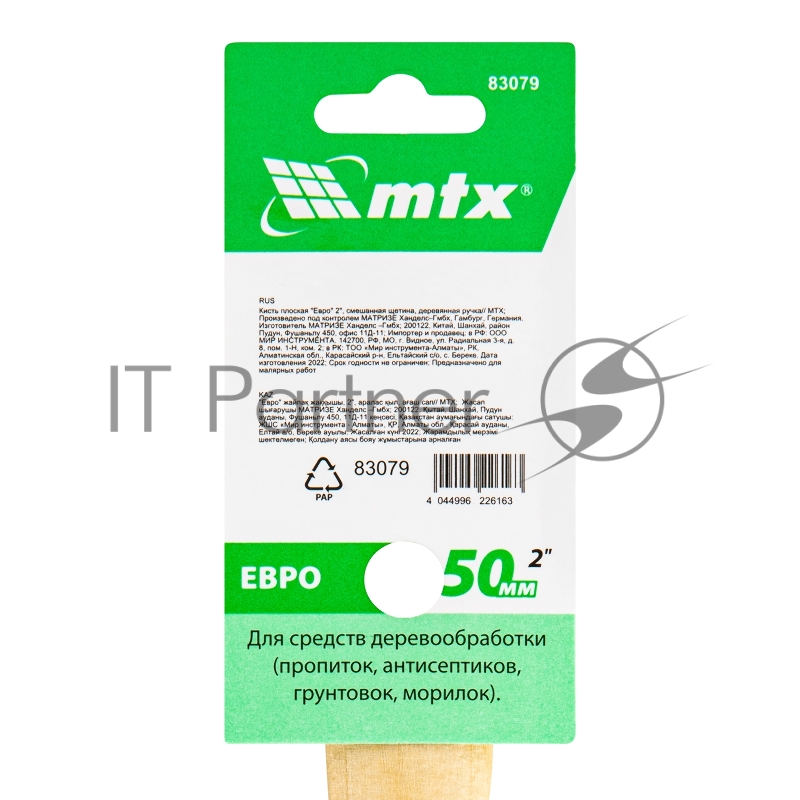 Кисть плоская Евро 2, смешанная щетина, деревянная ручка// MTX