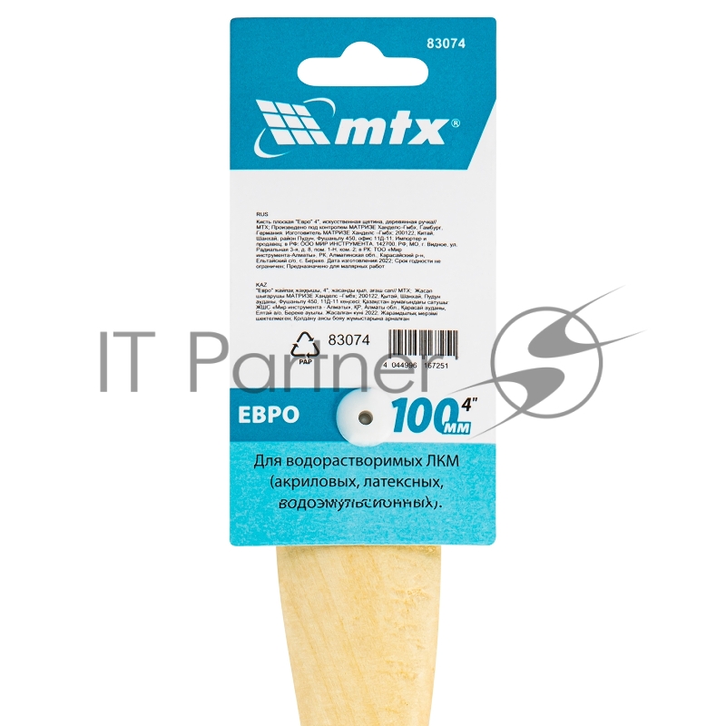 Кисть плоская Евро 4, искусственная щетина, деревянная ручка// MTX