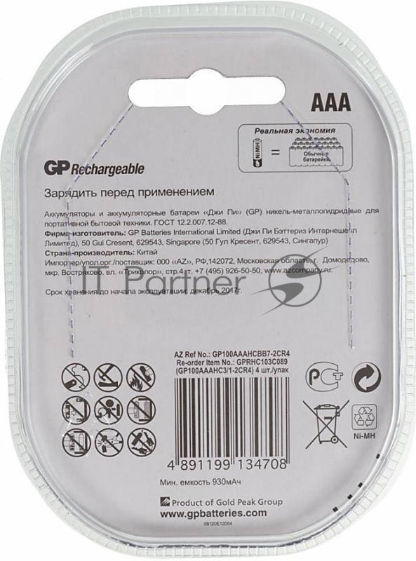 [Аккумулятор] GP 100AAAHC3/1-2CR4 AAA 1000mAh (3шт +1 шт. в уп-ке)