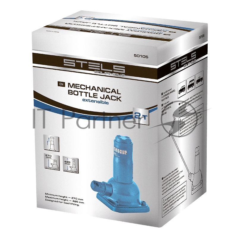 Домкрат механический бутылочный, 2 т, h подъема 270–485 мм, 2 части (домкрат, ручка)// Stels