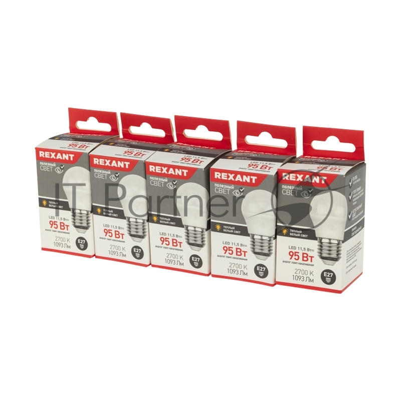 Лампа светодиодная Шарик (GL) 11,5 Вт E27 1093 Лм 2700 K теплый свет REXANT(5 шт./уп.)